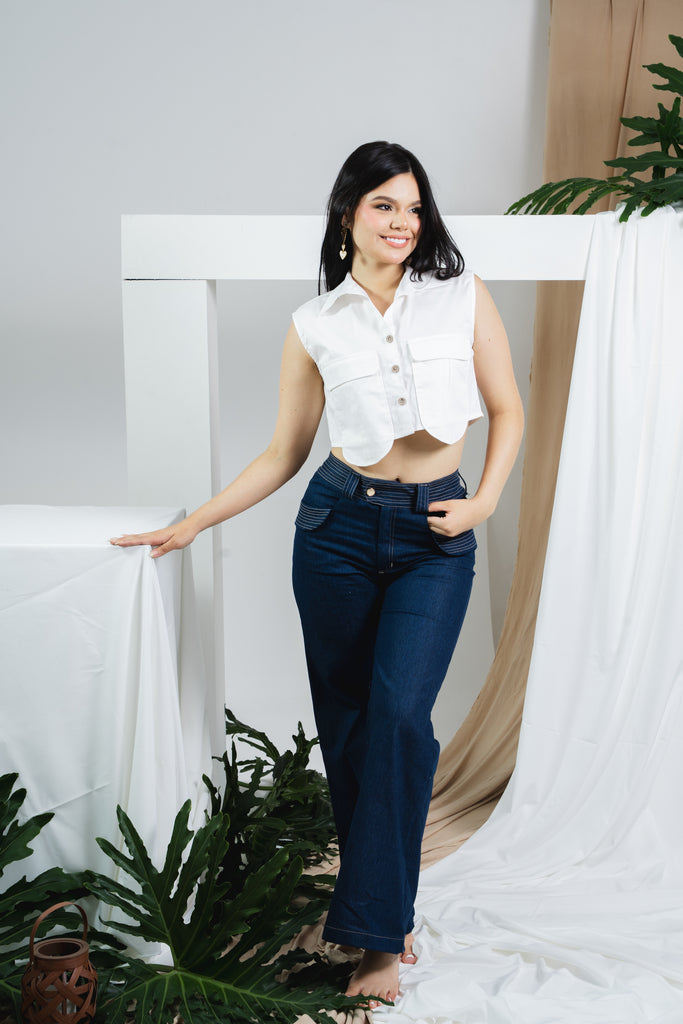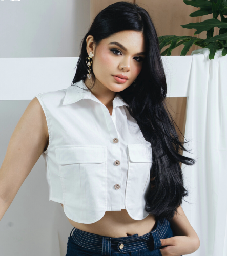 Blusa Sayra combina elegancia minimalista y actitud contemporánea. Confeccionada en dril satinado, ofrece una estructura impecable que realza la figura con suavidad. Su diseño tipo crop con cuello camisero y bolsillos frontales aporta un aire moderno y versátil, ideal para crear looks urbanos con un toque de distinción. Una prenda que encarna la esencia sofisticada y atemporal de Loure.