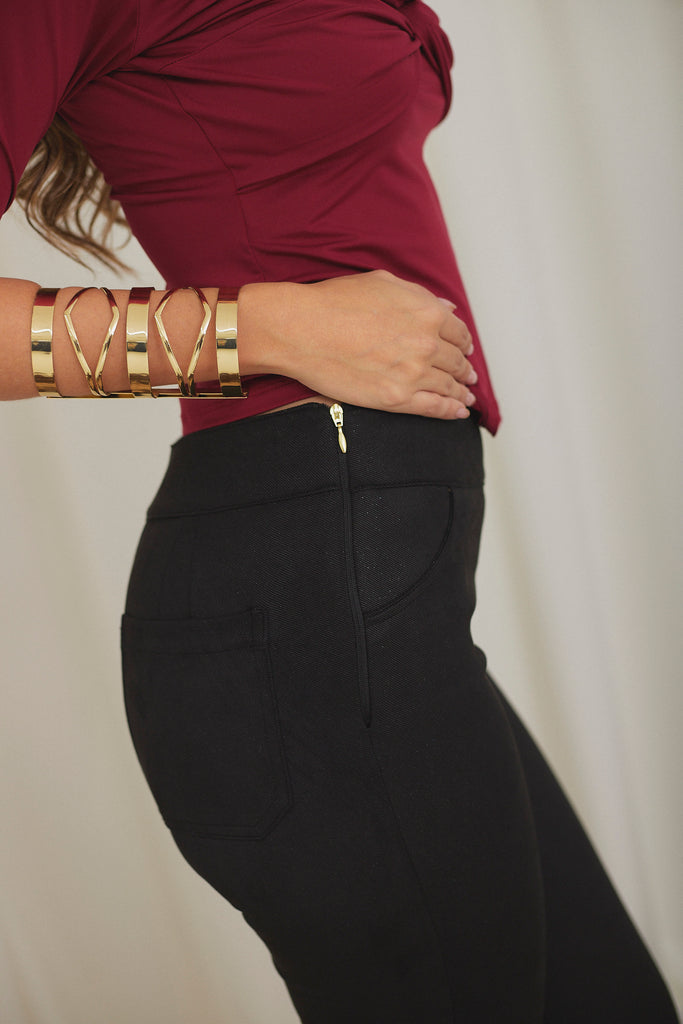 Pantalón Stretch está elaborado en poliéster con spandex, una combinación que aporta elasticidad, suavidad y un ajuste perfecto. Su diseño tipo leggins de tiro alto estiliza la figura y lo convierte en un básico imprescindible para looks cómodos, urbanos o casuales. Ideal para combinar con blusas sueltas, crop tops o prendas estructuradas. Es ese pantalón negro versátil que nunca falla.