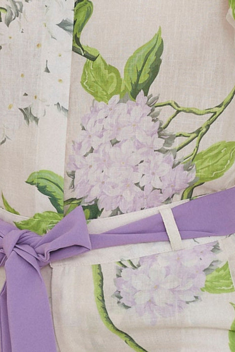 Pantalón Hortensia está elaborado en lino, un material natural que aporta frescura, suavidad y una caída elegante. Su diseño floral con hortensias en tonos lilas y verdes transmite romanticismo y frescura, perfecto para días soleados o para un look primaveral. Tiene corte recto, bolsillos funcionales y una silueta favorecedora que alarga visualmente las piernas. Puedes usarlo con su blusa a juego o combinarlo con prendas lisas para destacar su estampado único.