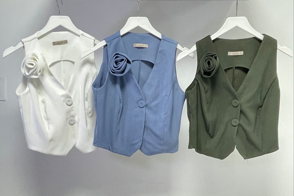 Elaborada en poliéster Spandex, la Blusa Menta combina suavidad y elasticidad para un ajuste cómodo y elegante. Su escote en V estiliza el cuello, mientras que su botonera central aporta un toque clásico a demás tiene una flor que resalta su delicadeza. La ausencia de mangas la hace ideal para climas cálidos, y su detalle de flor sobrepuesta agrega un aire romántico y sofisticado. Perfecta para looks frescos y femeninos.