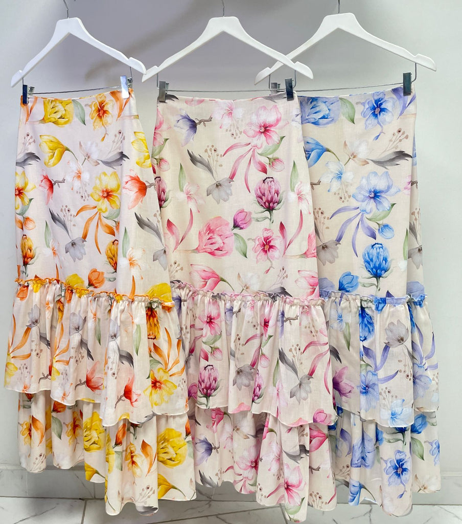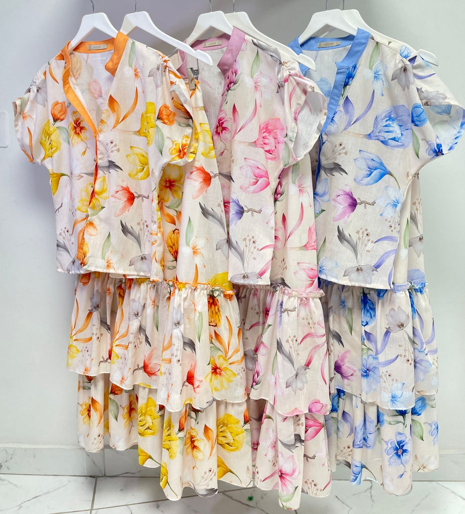 Vestido confeccionada en lino, destaca por su hermoso estampado floral y su diseño versátil. Su corte semi ajustado en la cintura estiliza la figura, brindando una silueta femenina y favorecedora. Los volantes superpuestos añaden un toque de movimiento y dinamismo, perfectos para crear un look romántico y sofisticado. Además, incluye un cinturón sobrepuesto, ideal para resaltar la cintura y lograr un ajuste personalizado. Su caída fluida y liviana la convierten en una opción fresca y cómoda, perfecta para combinar con blusas elegantes o tops más casuales.